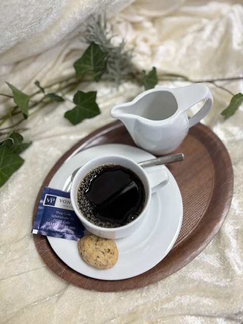 Kaffee und Kuchen mit Blick auf die malerischen Allerwiesen und den Heilpflanzengarten.